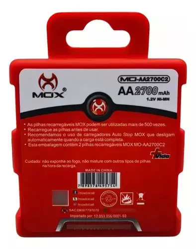 - Esta Embalagem contém 2 Pilhas Recarregáveis MOX MO-AA2700C4