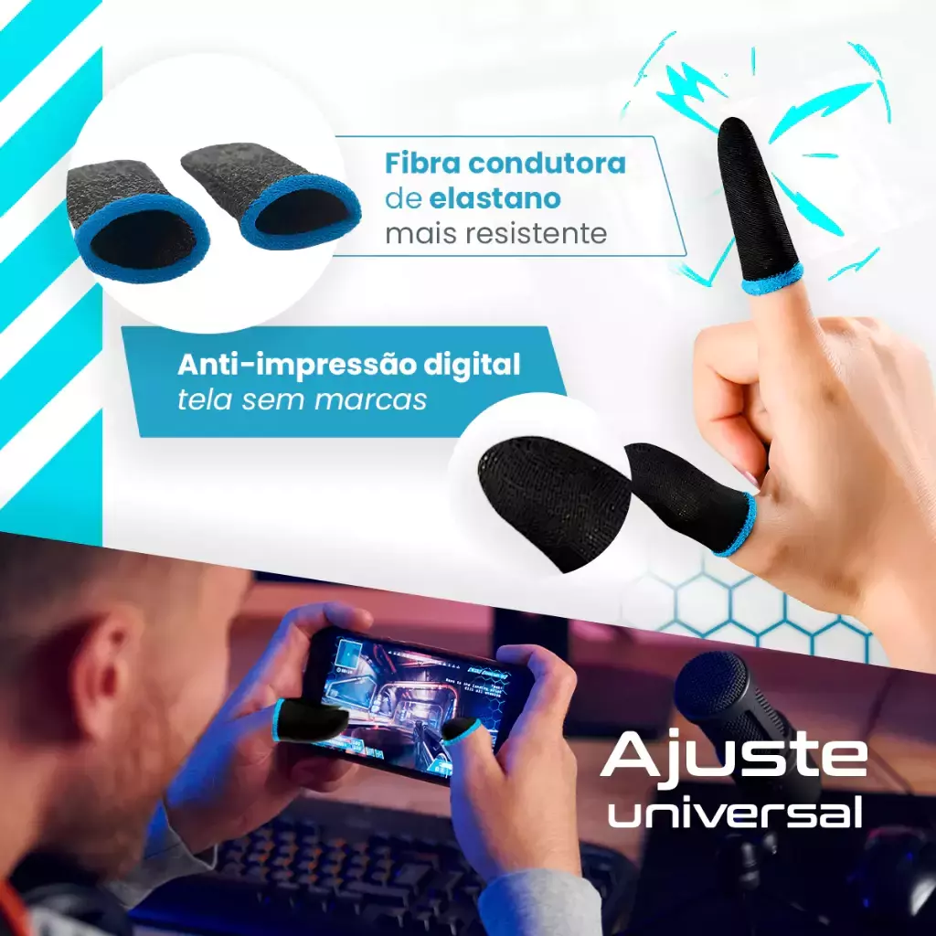 LUVA DE DEDO GAMER ANTI-SUOR PARA CELULAR (MELHORE SUA PERFORMANCE NOS JOGOS): Domine suas partidas com as Luvinhas de Dedo Gamer Anti-Suor, projetadas para proporcionar o máximo de precisão e conforto durante o gameplay. Seja no Free Fire, PUBG Mobile, Fortnite, ou Call of Duty, elas são ideais para jogadores que desejam desempenho superior e sem interrupções. - COMO FUNCIONA; Fabricadas com fibra condutora de alta tecnologia, as luvas garantem uma experiência mais responsiva na tela sensível ao toque. O design sem costura e o tecido respirável eliminam problemas de suor e desconforto, mantendo seus dedos secos e prontos para a ação. - BENEFÍCIOS; *Melhoria no Desempenho: Toques mais precisos e movimentos suaves. *Anti-Suor: Adeus dedos escorregadios durante partidas intensas. *Material Ultraleve: Sensação natural, como se estivesse jogando sem nada nos dedos. *Compatibilidade Universal: Funciona com qualquer dispositivo touch. *Durabilidade Superior: Design resistente e sem costuras.